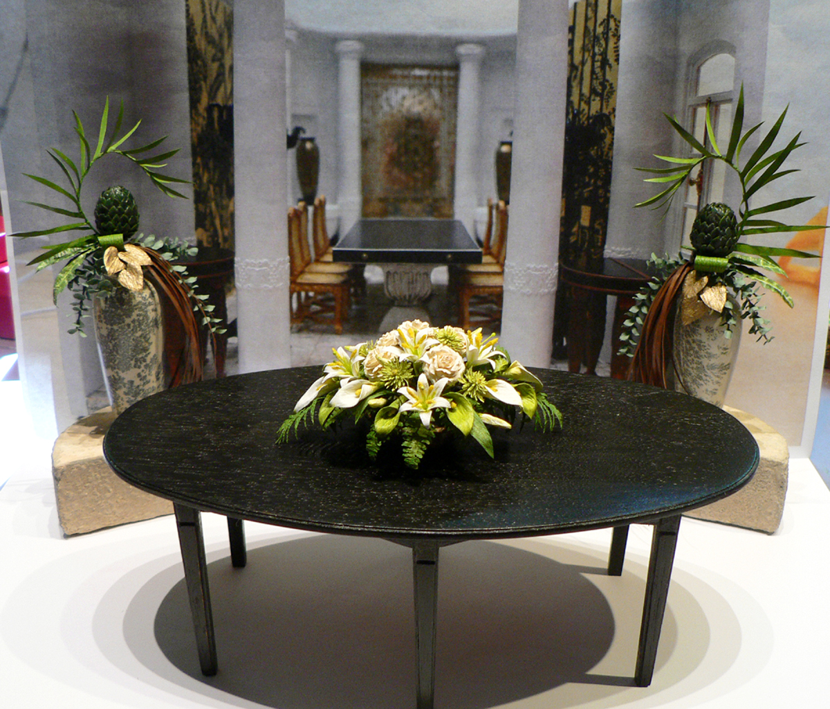 After long studies about the era of Art Deco,I finished this commission work. I had to learn the style of design,the flowers which they used in this time . It wasn't easy ,because mostly I arrange flowers casual . In this era every placement of a flower has to be well thought out and calculated. On the other hand, I am glad about this new knowledge ,so that I now know how to